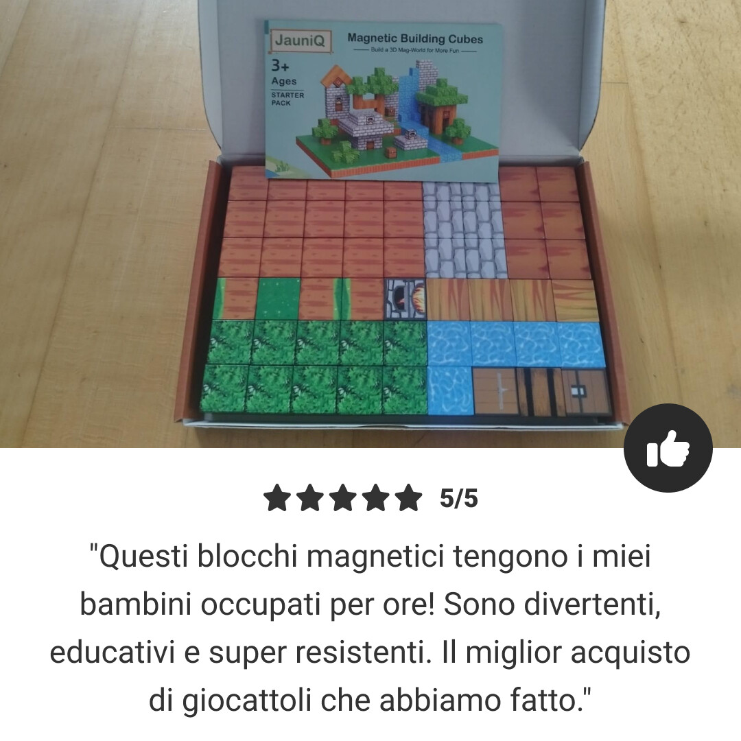 Mio figlio adora questi blocchi magnetici! Ha costruito torri e animali tutto il giorno. Sono educativi e divertenti, e mi piace che lo aiutino a pensare in modo creativo. Li consiglio vivamente
