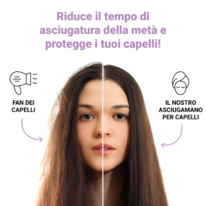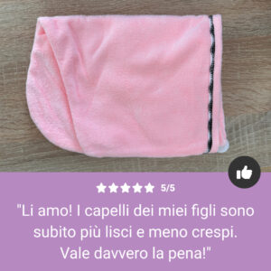 “Finalmente un asciugamano che asciuga davvero! I miei capelli sono più morbidi e meno danneggiati.”