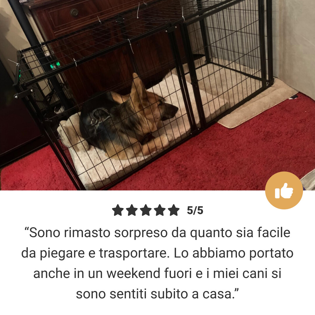 “Finalmente un recinto bello da vedere! La mia cagnolina lo adora – ed è perfetto anche in salotto” - Maria Rossi