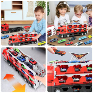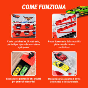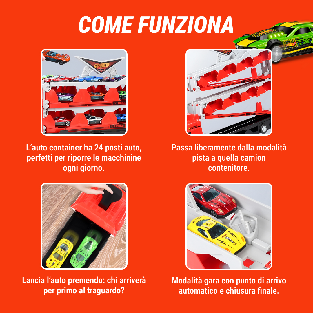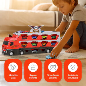 - Stile: Camion Mega Autotrasportatore con Pista da Corsa ad Espulsione
