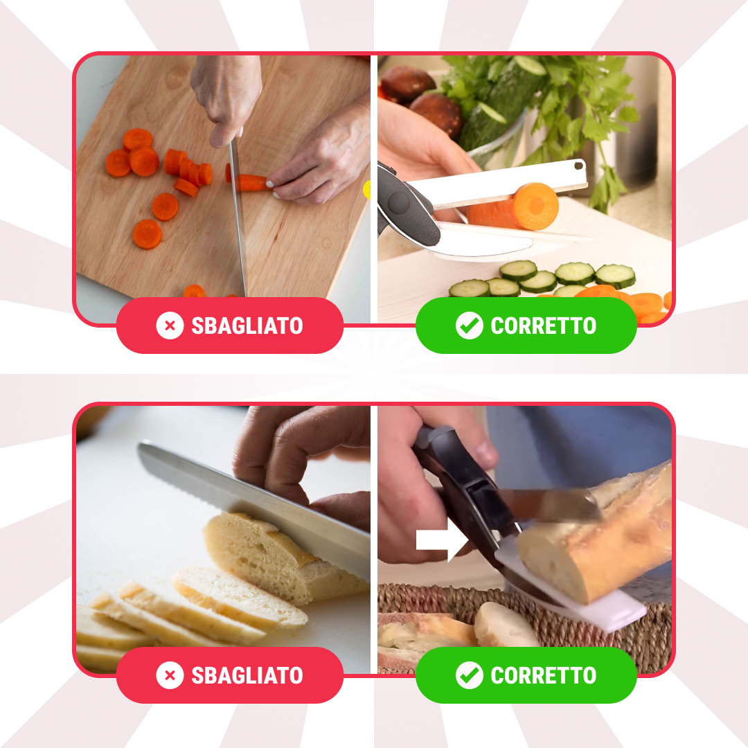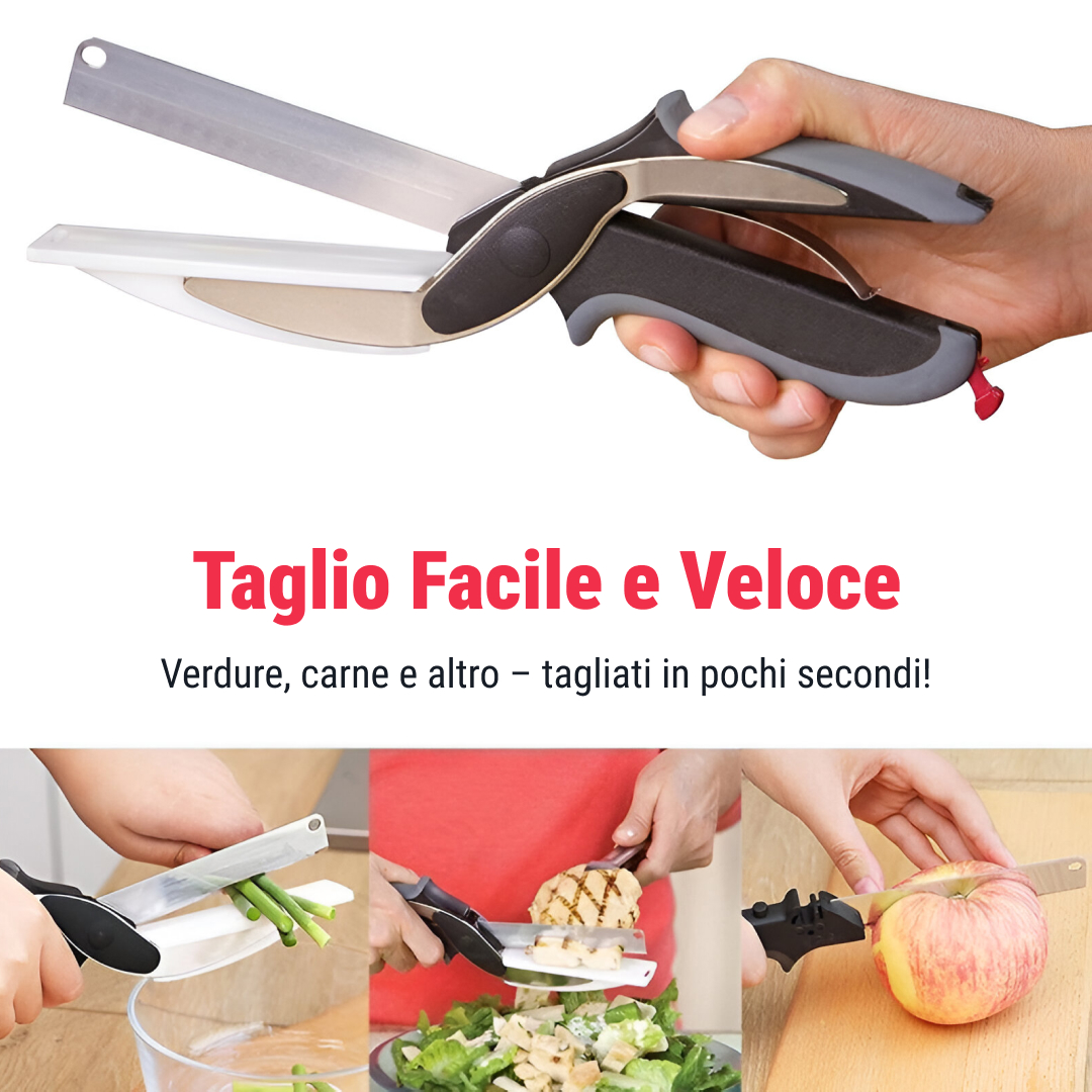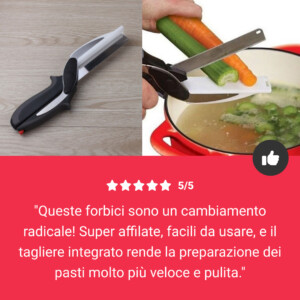 - Design Compatto: Forbici e tagliere in un solo strumento salvaspazio.